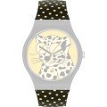 Esta bracelete de relógio Swatch é feita de silicone e está fixada ao relógio através de pinos em aço. A bracelete tem uma largura de 19.7 mm e fecha através de fecho. A bracelete não tem uma montagem a direito, o que significa que esta bracelete só é adequada para os relógios listados abaixo.