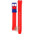 Esta bracelete de relógio Swatch é feita de silicone e está fixada ao relógio através de pinos em aço. A bracelete tem uma largura de 12 mm e fecha através de fecho. A bracelete não tem uma montagem a direito, o que significa que esta bracelete só é adequada para os relógios listados abaixo.