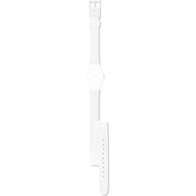 Esta bracelete de relógio Swatch é feita de silicone e está fixada ao relógio através de pinos em aço. A bracelete tem uma largura de 12 mm e fecha através de fecho. A bracelete não tem uma montagem a direito, o que significa que esta bracelete só é adequada para os relógios listados abaixo.