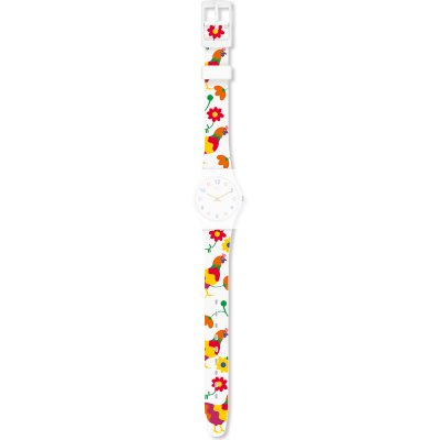 Esta bracelete de relógio Swatch é feita de silicone e está fixada ao relógio através de pinos em aço. A bracelete tem uma largura de 12 mm e fecha através de fecho. A bracelete não tem uma montagem a direito, o que significa que esta bracelete só é adequada para os relógios listados abaixo.