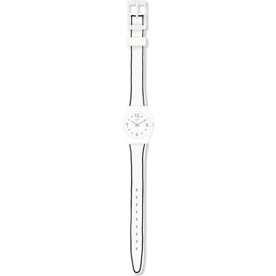 Esta bracelete de relógio Swatch é feita de silicone e está fixada ao relógio através de pinos em aço. A bracelete tem uma largura de 12 mm e fecha através de fecho. A bracelete não tem uma montagem a direito, o que significa que esta bracelete só é adequada para os relógios listados abaixo.