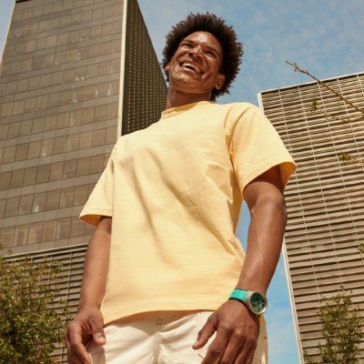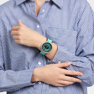 Este relógio Swatch tem uma caixa de Inox com um diâmetro de 47 mm e está equipado com uma bracelete de borracha. A caixa possui um movimento ETA e o relógio tem um vidro Acrílico.