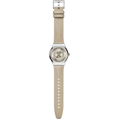 Este relógio Swatch tem uma caixa de Inox com um diâmetro de 42 mm e está equipado com uma bracelete de couro. A caixa possui um movimento ETA e o relógio tem um vidro Mineral.