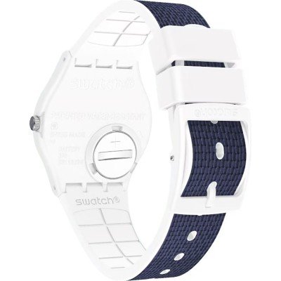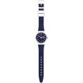 Este relógio Swatch tem uma caixa de Resina com um diâmetro de 34 mm e está equipado com uma bracelete de borracha. A caixa possui um movimento ETA e o relógio tem um vidro Acrílico.