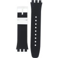 Esta bracelete de relógio Swatch é feita de silicone e está fixada ao relógio através de pinos em aço. A bracelete tem uma largura de 20.1 mm e fecha através de fecho. A bracelete não tem uma montagem a direito, o que significa que esta bracelete só é adequada para os relógios listados abaixo.