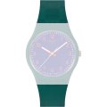 Esta bracelete de relógio Swatch é feita de silicone e está fixada ao relógio através de pinos em aço. A bracelete tem uma largura de 17 mm e fecha através de fecho. A bracelete não tem uma montagem a direito, o que significa que esta bracelete só é adequada para os relógios listados abaixo.