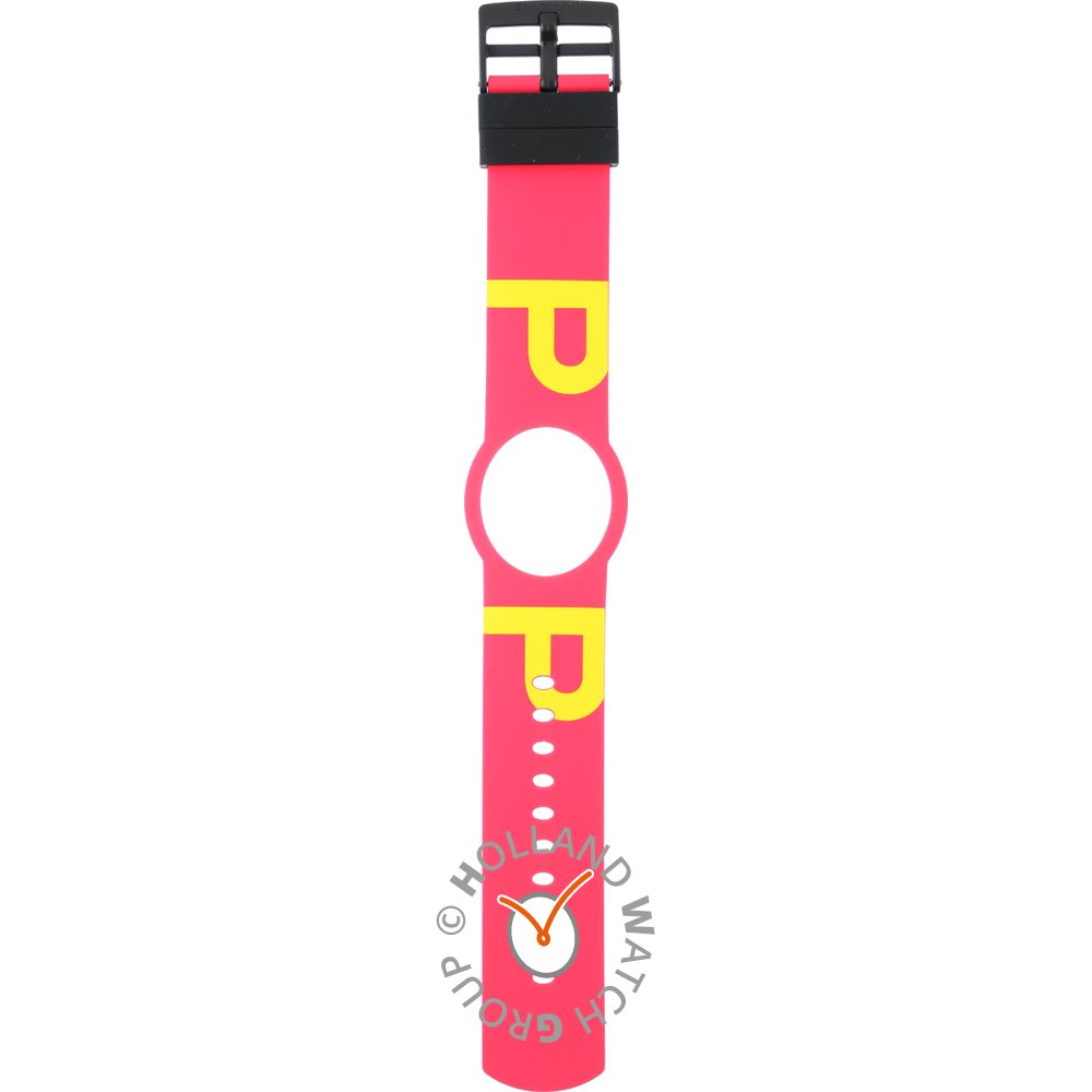 Esta bracelete de relógio Swatch é feita de silicone e está fixada ao relógio através de nenhum. A bracelete tem uma largura de 28 mm e fecha através de fecho. A bracelete não tem uma montagem a direito, o que significa que esta bracelete só é adequada para os relógios listados abaixo.