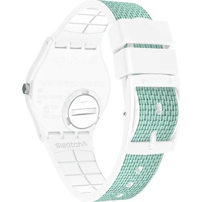 Este relógio Swatch tem uma caixa de Resina com um diâmetro de 34 mm e está equipado com uma bracelete de borracha. A caixa possui um movimento ETA e o relógio tem um vidro Acrílico.
