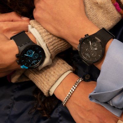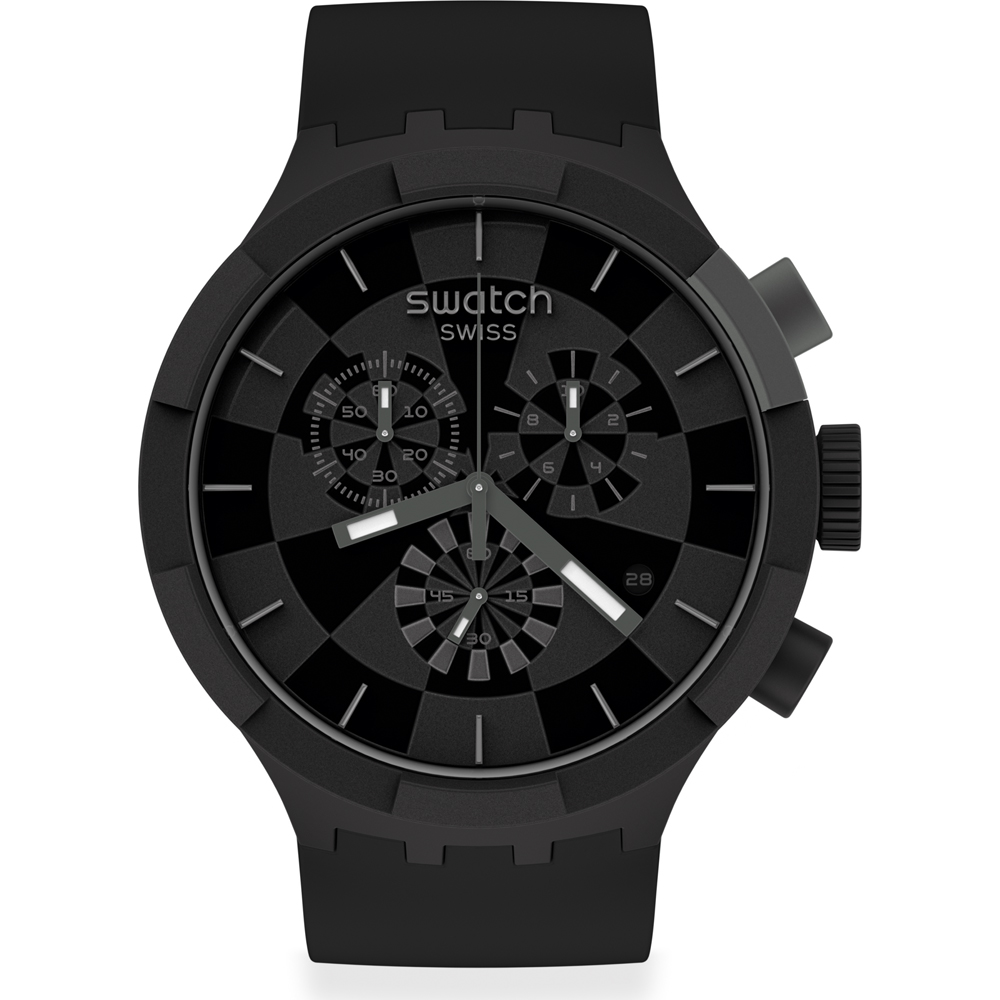 Este relógio Swatch tem uma caixa de Resina com um diâmetro de 47 mm e está equipado com uma bracelete de borracha. A caixa possui um movimento ETA e o relógio tem um vidro Acrílico.