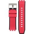 Esta bracelete de relógio Swatch é feita de borracha e está fixada ao relógio através de pinos em aço. A bracelete tem uma largura de 19.7 mm e fecha através de fecho. A bracelete não tem uma montagem a direito, o que significa que esta bracelete só é adequada para os relógios listados abaixo.