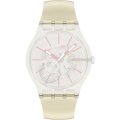 Este relógio Swatch tem uma caixa de Plástico de origem biológica com um diâmetro de 41 mm e está equipado com uma bracelete de borracha. A caixa possui um movimento ETA e o relógio tem um vidro Acrílico.