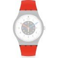 Esta bracelete de relógio Swatch é feita de plástico de origem biológica e está fixada ao relógio através de pinos em aço. A bracelete tem uma largura de 19.7 mm e fecha através de fecho. A bracelete não tem uma montagem a direito, o que significa que esta bracelete só é adequada para os relógios listados abaixo.
