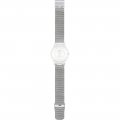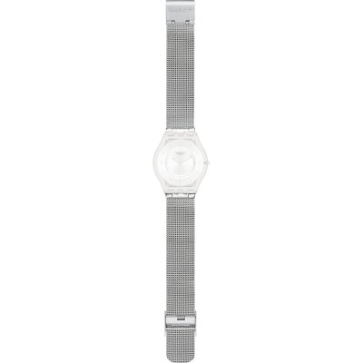Esta bracelete de relógio Swatch é feita de aço inoxidável e está fixada ao relógio através de pinos em aço. A bracelete tem uma largura de 16.5 mm e fecha através de fecho milanese. A bracelete não tem uma montagem a direito, o que significa que esta bracelete só é adequada para os relógios listados abaixo.