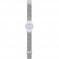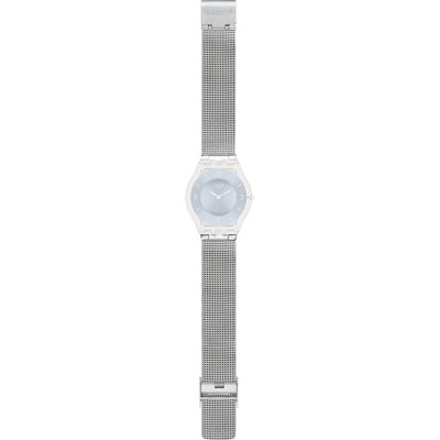 Esta bracelete de relógio Swatch é feita de aço inoxidável e está fixada ao relógio através de pinos em aço. A bracelete tem uma largura de 16.5 mm e fecha através de fecho milanese. A bracelete não tem uma montagem a direito, o que significa que esta bracelete só é adequada para os relógios listados abaixo.