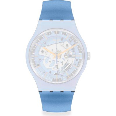 Esta bracelete de relógio Swatch é feita de silicone e está fixada ao relógio através de pinos em aço. A bracelete tem uma largura de 19.7 mm e fecha através de fecho. A bracelete não tem uma montagem a direito, o que significa que esta bracelete só é adequada para os relógios listados abaixo.