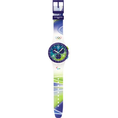 Este relógio Swatch tem uma caixa de Resina com um diâmetro de 42 mm e está equipado com uma bracelete de borracha. A caixa possui um movimento ETA e o relógio tem um vidro Acrílico.