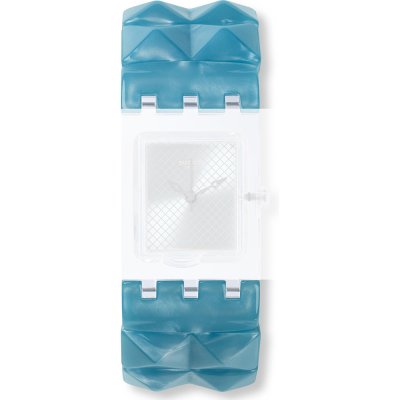 Esta bracelete de relógio Swatch é feita de resina e está fixada ao relógio através de pinos em aço. A bracelete tem uma largura de 18 mm. A bracelete não tem uma montagem a direito, o que significa que esta bracelete só é adequada para os relógios listados abaixo.