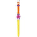 Este relógio Swatch tem uma caixa de Resina com um diâmetro de 25 mm e está equipado com uma bracelete de borracha. A caixa possui um movimento ETA e o relógio tem um vidro Acrílico.
