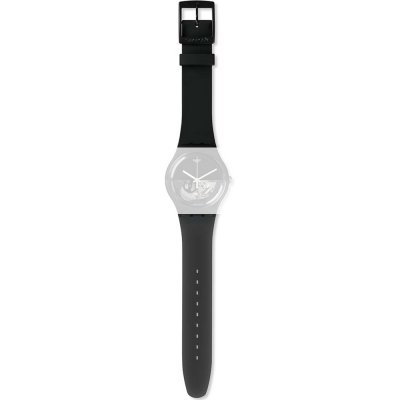 Esta bracelete de relógio Swatch é feita de silicone e está fixada ao relógio através de pinos em aço. A bracelete tem uma largura de 19.7 mm e fecha através de fecho. A bracelete não tem uma montagem a direito, o que significa que esta bracelete só é adequada para os relógios listados abaixo.