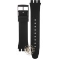Esta bracelete de relógio Swatch é feita de silicone e está fixada ao relógio através de pinos em aço. A bracelete tem uma largura de 19.7 mm e fecha através de fecho. A bracelete não tem uma montagem a direito, o que significa que esta bracelete só é adequada para os relógios listados abaixo.
