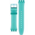 Esta bracelete de relógio Swatch é feita de silicone e está fixada ao relógio através de pinos em aço. A bracelete tem uma largura de 19.7 mm e fecha através de fecho. A bracelete não tem uma montagem a direito, o que significa que esta bracelete só é adequada para os relógios listados abaixo.
