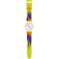 Esta bracelete de relógio Swatch é feita de silicone e está fixada ao relógio através de pinos em aço. A bracelete tem uma largura de 19.7 mm e fecha através de fecho. A bracelete não tem uma montagem a direito, o que significa que esta bracelete só é adequada para os relógios listados abaixo.