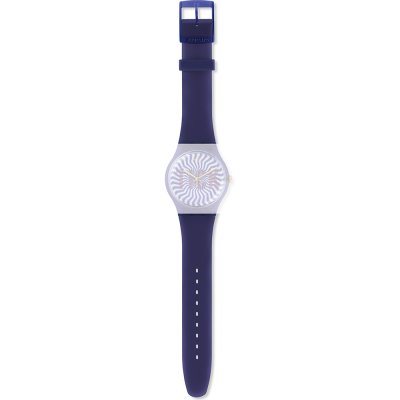 Esta bracelete de relógio Swatch é feita de silicone e está fixada ao relógio através de pinos em aço. A bracelete tem uma largura de 19.7 mm e fecha através de fecho. A bracelete não tem uma montagem a direito, o que significa que esta bracelete só é adequada para os relógios listados abaixo.