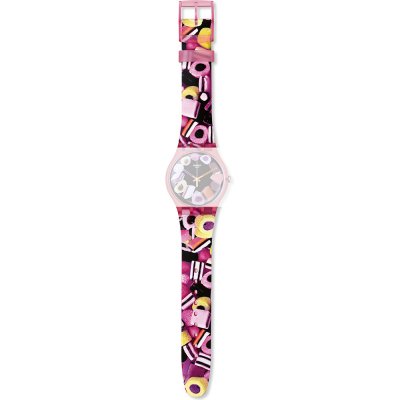 Esta bracelete de relógio Swatch é feita de silicone e está fixada ao relógio através de pinos em aço. A bracelete tem uma largura de 19.7 mm e fecha através de fecho. A bracelete não tem uma montagem a direito, o que significa que esta bracelete só é adequada para os relógios listados abaixo.
