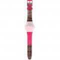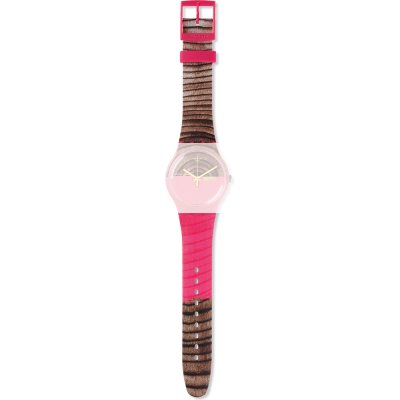 Esta bracelete de relógio Swatch é feita de silicone e está fixada ao relógio através de pinos em aço. A bracelete tem uma largura de 19.7 mm e fecha através de fecho. A bracelete não tem uma montagem a direito, o que significa que esta bracelete só é adequada para os relógios listados abaixo.