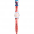 Esta bracelete de relógio Swatch é feita de silicone e está fixada ao relógio através de pinos em aço. A bracelete tem uma largura de 19.7 mm e fecha através de fecho. A bracelete não tem uma montagem a direito, o que significa que esta bracelete só é adequada para os relógios listados abaixo.