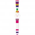 Esta bracelete de relógio Swatch é feita de silicone e está fixada ao relógio através de pinos em aço. A bracelete tem uma largura de 19.7 mm e fecha através de fecho. A bracelete não tem uma montagem a direito, o que significa que esta bracelete só é adequada para os relógios listados abaixo.