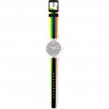 Esta bracelete de relógio Swatch é feita de silicone e está fixada ao relógio através de pinos em aço. A bracelete tem uma largura de 19.7 mm e fecha através de fecho. A bracelete não tem uma montagem a direito, o que significa que esta bracelete só é adequada para os relógios listados abaixo.