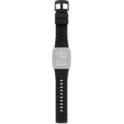 Esta bracelete de relógio Swatch é feita de silicone e está fixada ao relógio através de pinos em aço. A bracelete tem uma largura de 28 mm e fecha através de fecho. A bracelete não tem uma montagem a direito, o que significa que esta bracelete só é adequada para os relógios listados abaixo.