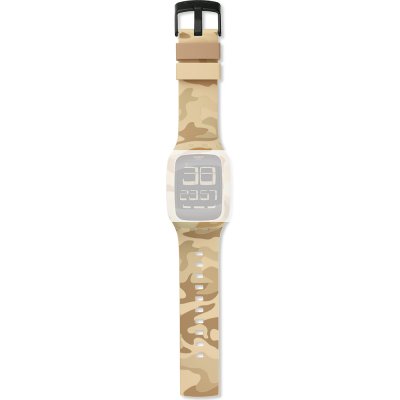 Esta bracelete de relógio Swatch é feita de silicone e está fixada ao relógio através de pinos em aço. A bracelete tem uma largura de 28 mm e fecha através de fecho. A bracelete não tem uma montagem a direito, o que significa que esta bracelete só é adequada para os relógios listados abaixo.