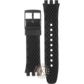 Esta bracelete de relógio Swatch é feita de silicone e está fixada ao relógio através de pinos em aço. A bracelete tem uma largura de 20.1 mm e fecha através de fecho. A bracelete não tem uma montagem a direito, o que significa que esta bracelete só é adequada para os relógios listados abaixo.