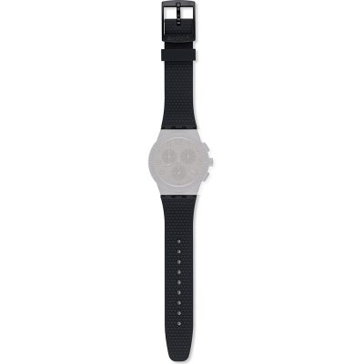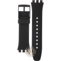 Esta bracelete de relógio Swatch é feita de silicone e está fixada ao relógio através de pinos em aço. A bracelete tem uma largura de 20.1 mm e fecha através de fecho. A bracelete não tem uma montagem a direito, o que significa que esta bracelete só é adequada para os relógios listados abaixo.