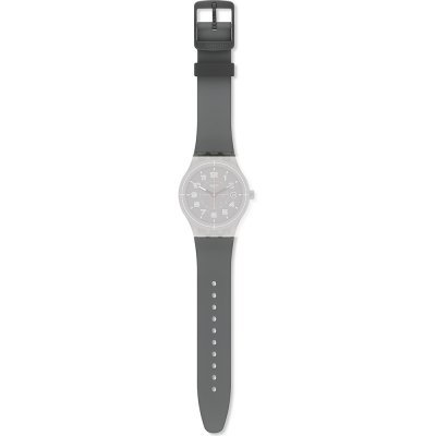 Esta bracelete de relógio Swatch é feita de silicone e está fixada ao relógio através de pinos em aço. A bracelete tem uma largura de 19.8 mm e fecha através de fecho. A bracelete não tem uma montagem a direito, o que significa que esta bracelete só é adequada para os relógios listados abaixo.
