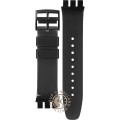 Esta bracelete de relógio Swatch é feita de resina e está fixada ao relógio através de pinos em aço. A bracelete tem uma largura de 21.3 mm e fecha através de fecho. A bracelete não tem uma montagem a direito, o que significa que esta bracelete só é adequada para os relógios listados abaixo.