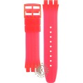 Esta bracelete de relógio Swatch é feita de resina e está fixada ao relógio através de pinos em aço. A bracelete tem uma largura de 21.3 mm e fecha através de fecho. A bracelete não tem uma montagem a direito, o que significa que esta bracelete só é adequada para os relógios listados abaixo.