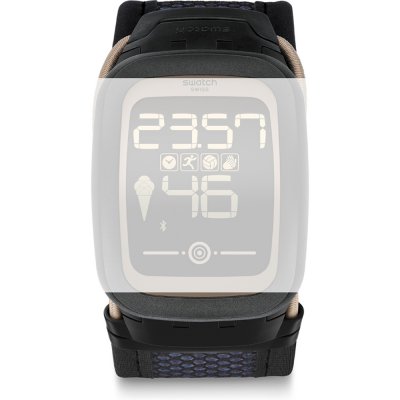 Esta bracelete de relógio Swatch é feita de tecido e está fixada ao relógio através de pinos em aço. A bracelete tem uma largura de 28 mm e fecha através de presilhas braceletes relógio. A bracelete não tem uma montagem a direito, o que significa que esta bracelete só é adequada para os relógios listados abaixo.