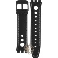 Esta bracelete de relógio Swatch é feita de couro e está fixada ao relógio através de pinos em aço. A bracelete tem uma largura de 19.9 mm e fecha através de fecho. A bracelete não tem uma montagem a direito, o que significa que esta bracelete só é adequada para os relógios listados abaixo.