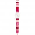 Esta bracelete de relógio Swatch é feita de silicone e está fixada ao relógio através de pinos em aço. A bracelete tem uma largura de 14.6 mm e fecha através de fecho. A bracelete não tem uma montagem a direito, o que significa que esta bracelete só é adequada para os relógios listados abaixo.