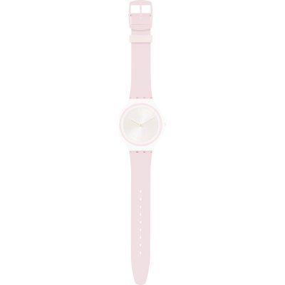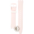Esta bracelete de relógio Swatch é feita de silicone e está fixada ao relógio através de pinos em aço. A bracelete tem uma largura de 15.9 mm e fecha através de fecho. A bracelete não tem uma montagem a direito, o que significa que esta bracelete só é adequada para os relógios listados abaixo.