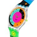 Este relógio Swatch tem uma caixa de Plástico de origem biológica com um diâmetro de 33.7 mm e está equipado com uma bracelete de borracha. A caixa possui um movimento ETA e o relógio tem um vidro Acrílico.