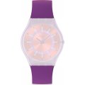 Esta bracelete de relógio Swatch é feita de silicone e está fixada ao relógio através de pinos em aço. A bracelete tem uma largura de 16.5 mm e fecha através de fecho. A bracelete não tem uma montagem a direito, o que significa que esta bracelete só é adequada para os relógios listados abaixo.