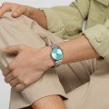 Este relógio Swatch tem uma caixa de Inox com um diâmetro de 38 mm e está equipado com uma bracelete de metal. A caixa possui um movimento ETA e o relógio tem um vidro Acrílico.