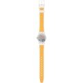 Este relógio Swatch tem uma caixa de Resina com um diâmetro de 25 mm e está equipado com uma bracelete de borracha. A caixa possui um movimento ETA e o relógio tem um vidro Acrílico.