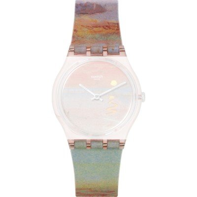 Esta bracelete de relógio Swatch é feita de silicone e está fixada ao relógio através de pinos em aço. A bracelete tem uma largura de 17 mm e fecha através de fecho. A bracelete não tem uma montagem a direito, o que significa que esta bracelete só é adequada para os relógios listados abaixo.