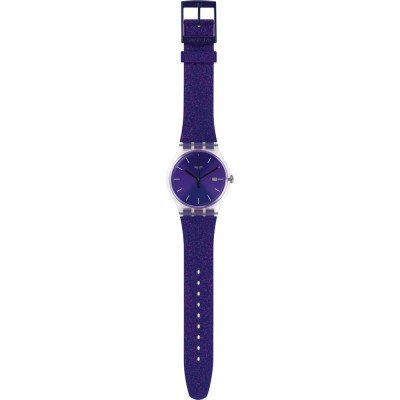 Este relógio Swatch tem uma caixa de Resina com um diâmetro de 41 mm e está equipado com uma bracelete de borracha. A caixa possui um movimento ETA e o relógio tem um vidro Acrílico.