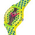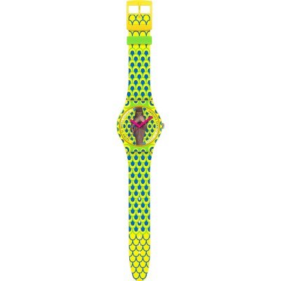 Este relógio Swatch tem uma caixa de Plástico de origem biológica com um diâmetro de 41 mm e está equipado com uma bracelete de borracha. A caixa possui um movimento ETA e o relógio tem um vidro Acrílico.